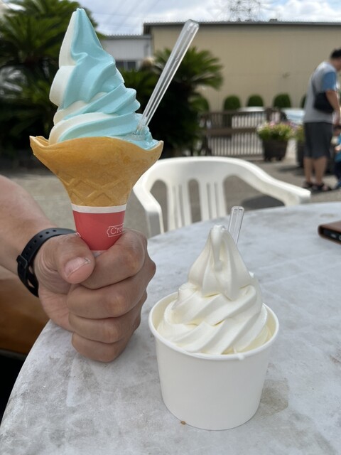 小腹が空いたので、久々に立ち寄りました。カレーとか牛丼とか売ってたはずなんですが、今日はお休み?ハズさないソフトクリームをいただいて、満たされました。店内の飲むヨーグルトもいただきましたが、なかなか濃...