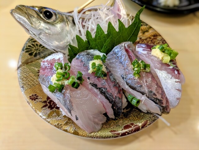 寿司は炙り秋刀魚や地魚三種盛り(イサキ、ワラサ、カンパチ)、炙りサーモン、トロ、えんがわ、カツオなどを注文。どのネタも大き...