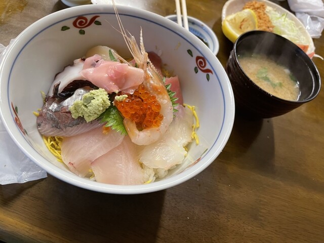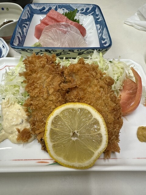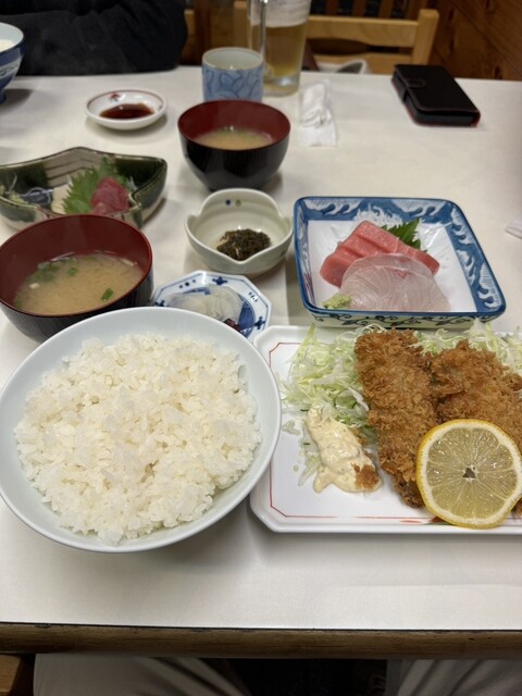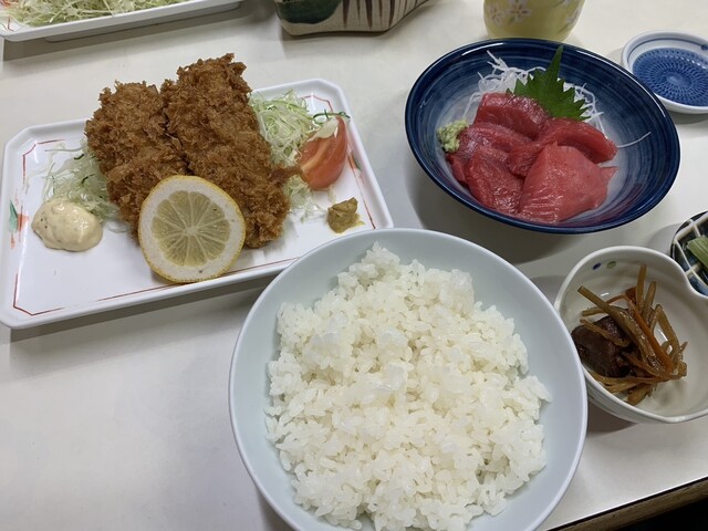 メニューは、アジフライ定食、本マグロとアジフライ定食。鯵の刺身とアジフライ定食。海鮮丼、刺身定食などなど。