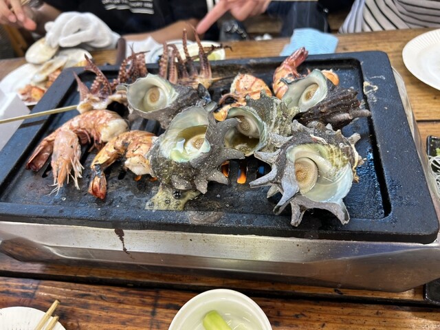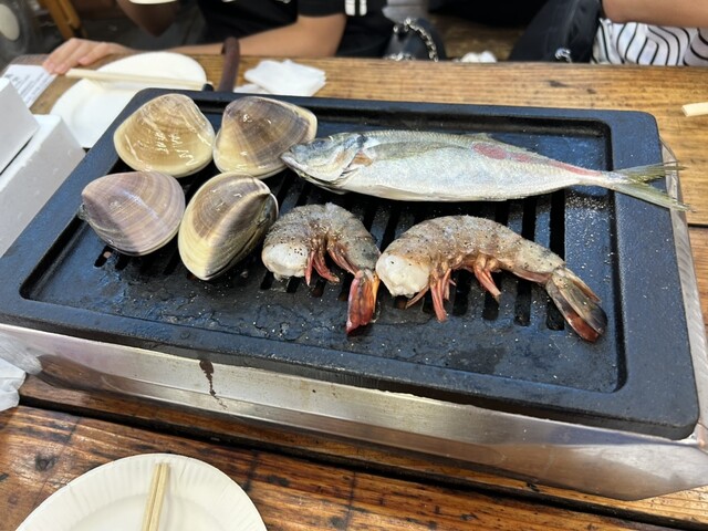 子供可 お子様づれ、もちろんOKですが、テーブル上の浜焼きコンロは大変熱くなります。軍手、トングなどを用意していますが、貝によってははじけることもございます。火傷には十分ご注意ください。 |