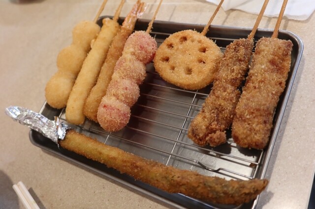 今回は串カツ各種等をいただきました。串カツはあっさりと揚げられていて、気軽に食べることができます。串カツと伝統のソースの相性が合っ...