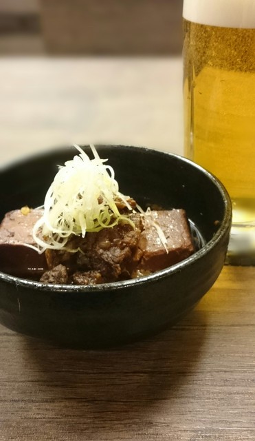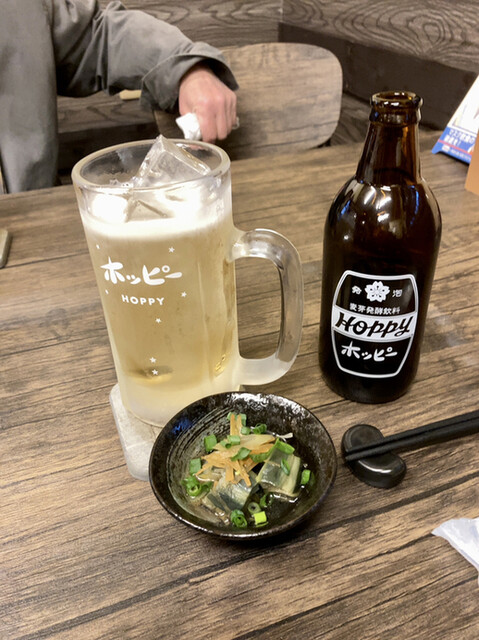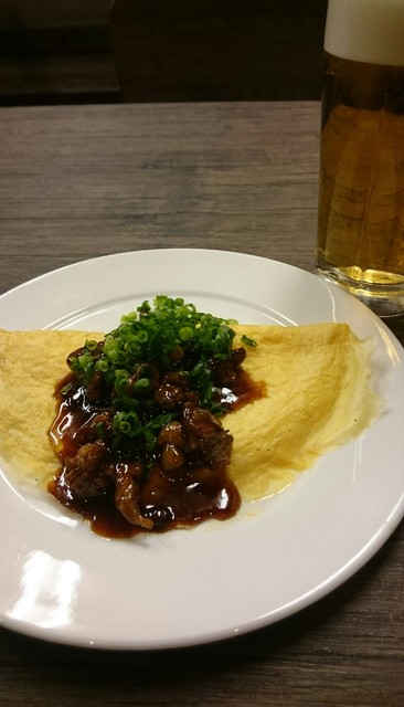 最近ちょくちょく利用させていただいてます。この日はあまり腹は空いていなかったのでオムレツ、柔らか厚揚げねぎ納豆、豚ハラミにホッピーとビール。