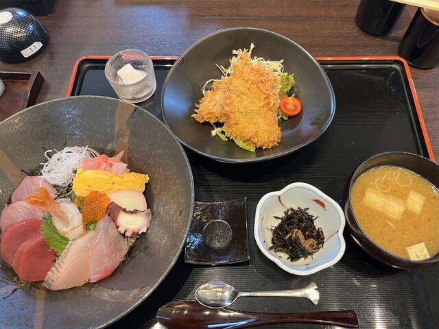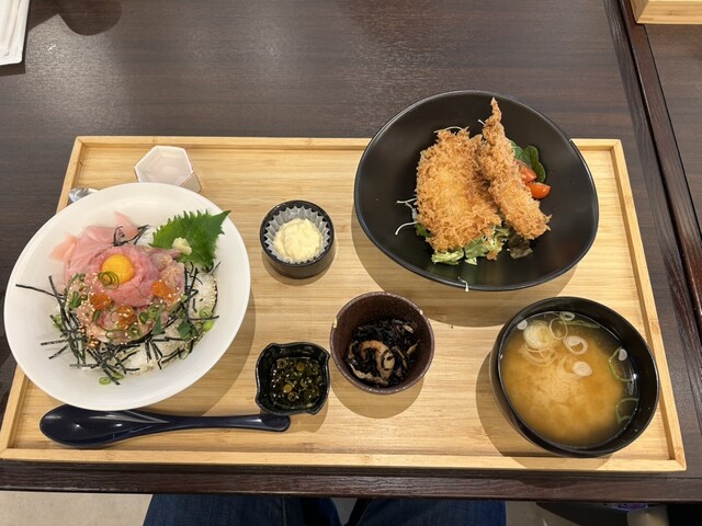 わらべ菜魚堂の人気メニュー、アジフライや海鮮丼なども楽しむことができます。