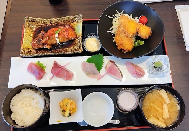 お刺身などいろいろ付いてくる定食もありましたが、お目当てのキンメとアジフライをふんだんに味わえる取り合せ定食にしました。