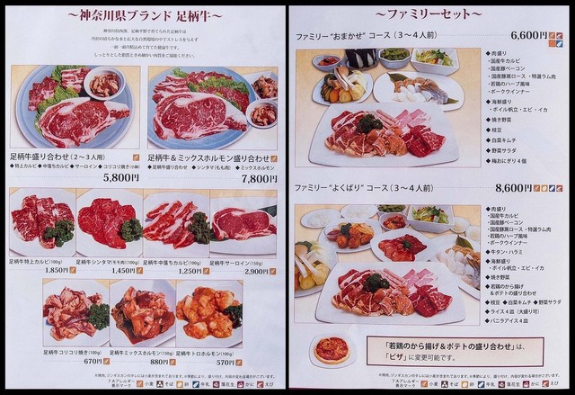 メニューは足柄牛の焼肉・ラム肉のジンギスカン・肉魚介の備長炙り焼きなど、
