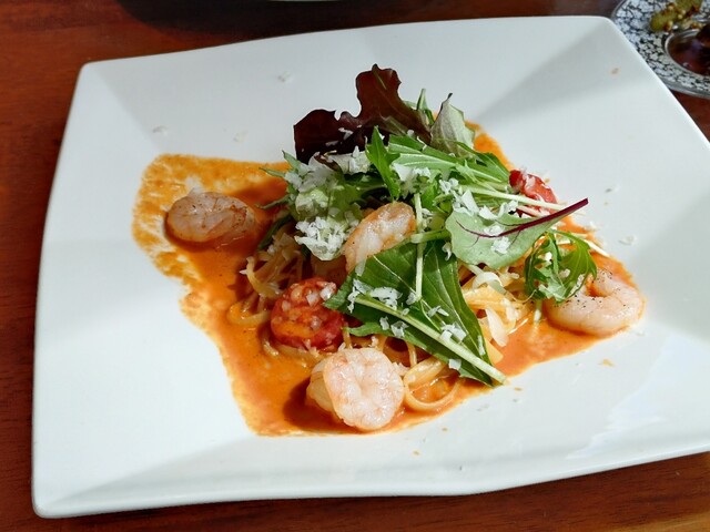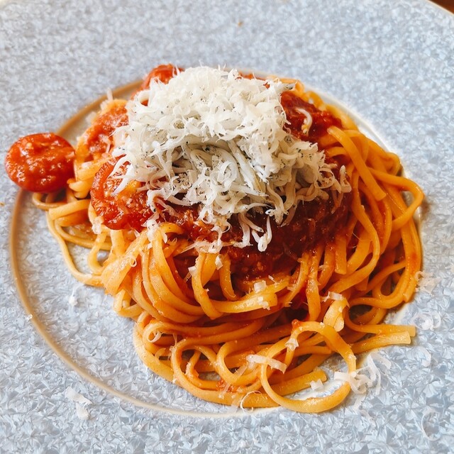 パスタの麺は細い方が好きなので、ボロネーゼも美味しそうだったけれど選択出来ず。しらすとトマトのパスタは生麺で少し細めだった...