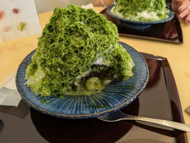 夏にしか食べられないお茶のかき氷をいただいた。