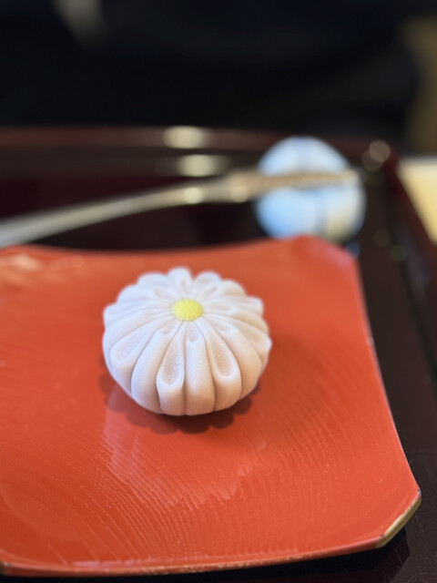 まず一煎目を飲みながらお菓子を待ちます。ぬるめ...
