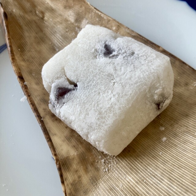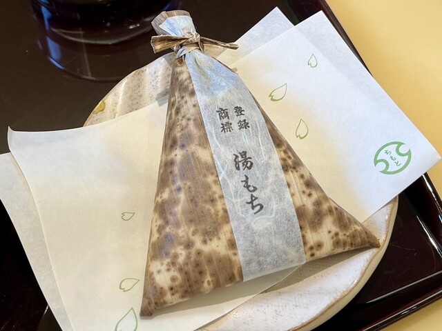 笹に包まれた名物菓子。マシュマロのようにふんわり柔らかい求肥の中に羊羹が入っ...