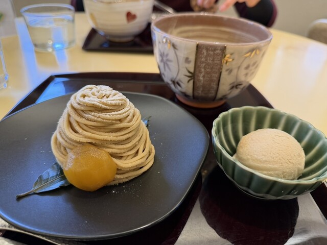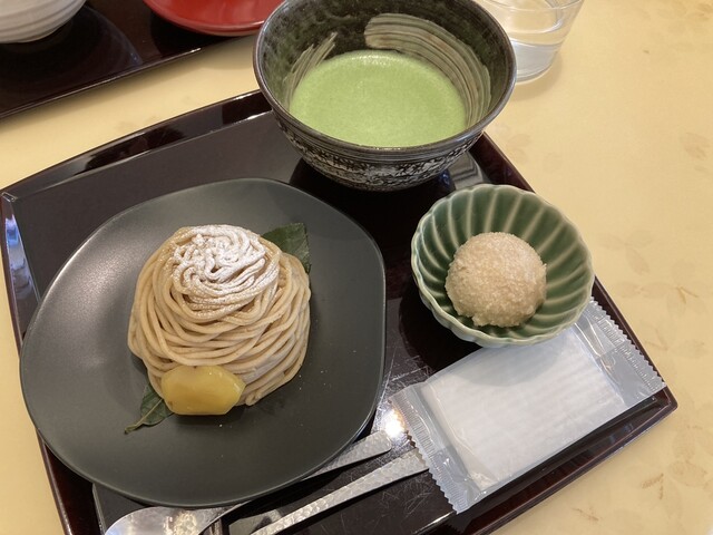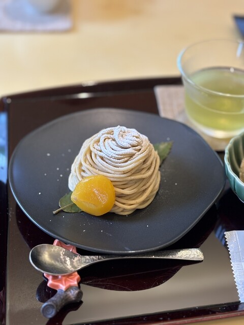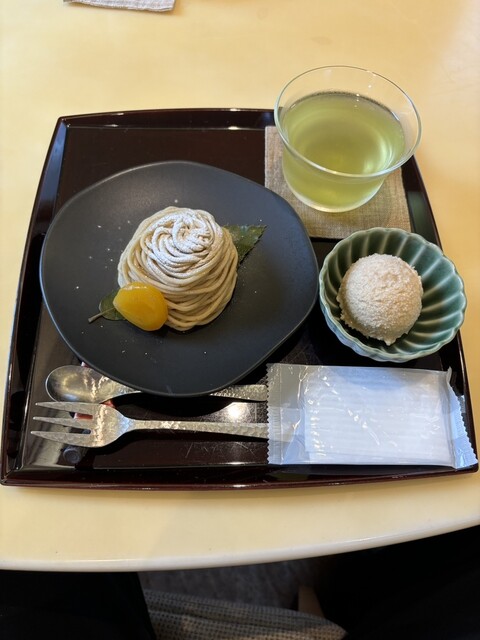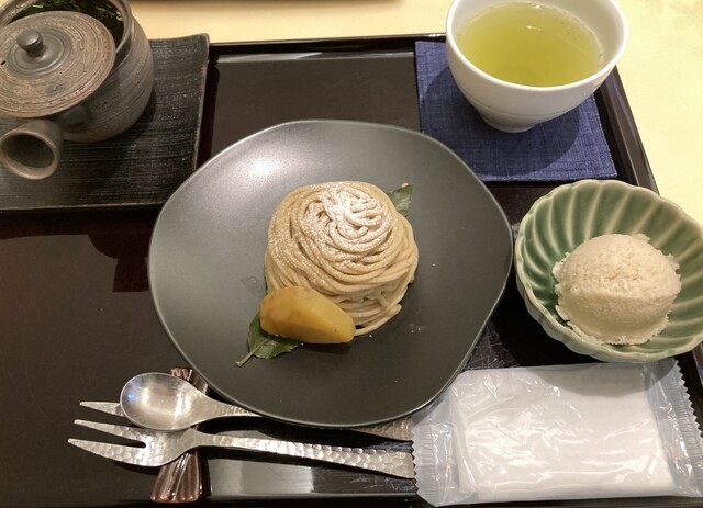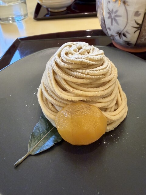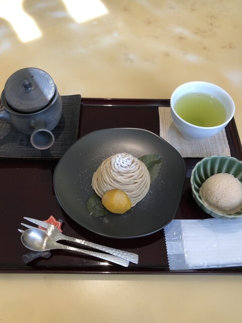 モンブランの茶菓子セットを注文し、約5分後に提供いただきました。モンブランはアルコー...
