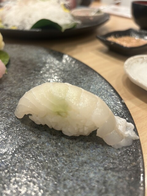 当日予約で伺い、座敷席に通していただきました。 まず印象的だったのがお通し。お寿司屋さんならではの一品で、毎度美味しい。 今回は貝ひもの煮物。写真はありませんが、優しい味わいでお酒にも合い、スタートから気分が上がります。 今回いただいたのは、 • 特上握り • 黒ムツの天ぷら ... 詳細を見る