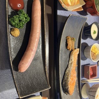 ...私、おひつにおかわりもらっちゃいました。 一人一人提供されるのですが、プラスでミニバイキングがあり、南瓜のグラタン、味噌いためもの、無農...