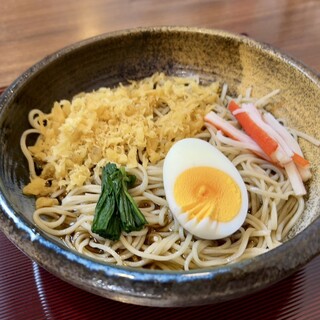 ...のり・かまぼこ・ほうれん草・大根の細切り・しいたけ。 ■単品のかき揚げ。 ■そば ■かき揚げ ■府中もりあげそば:1100円...ほぼ通し営業のコチラに入って、かき揚げそば(温)¥1350を注文した。...2枚重ねのせいろに、エビと玉葱のかき揚げ。 そばは...