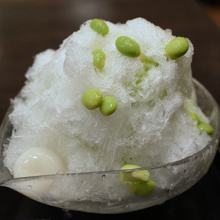...私たちは初めから『かき氷』狙いです。かき氷のメニューは、『宇治ミルク金時フラッペ(税込830円)』と『ずんだフラッペ(税込870円)』の二択ですが、2人とも『宇治ミルク金時フラッペ』にしました。一度に2人分のかき氷をつくることは出来ないので...