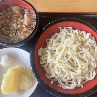 ...13時前だからか場所的に知る人がおらんからか先客ゼロ。 メニューは4種類だけです。 肉汁 きのこ汁 かけ もり で肉汁うどんを注文。 お...