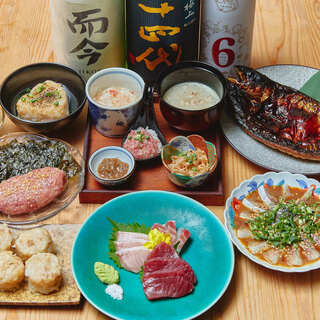...■京春菊の胡麻和え ■半熟豆腐の冷奴 ■仙台せりと舞茸のおひたし ■真鱈の白子ポン酢 ■熟成魚のお造り 一人前 ■大椎茸と黒あわび茸の網焼き...