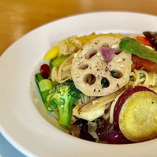 ...蒸されることで香りが立ち、モチモチ食感に。かなり酸味が強いパンもありましたが、噛むほどに甘味も感じられます。 スパゲッティはシソがほんのり香り...