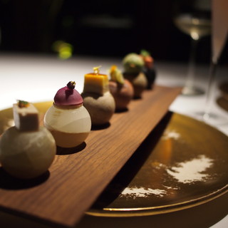 ...カリフラワーのムース ズッキーニ仕立て ■フォアグラのポワレ トウモロコシのエスプーマ サマートリュフ添え ■胡瓜のスープに浮かんだフルーツトマトのアイス...信州産チェリーのサバラン 信州産ブルーベリーのタルト 【オープンサンド】 信州産トウモロコシの冷製スープ 自家製のライ麦パンにパデドカンパーニュ...