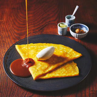 ...贅沢なクレープをいただけます。 濃厚な赤卵を使用したクレープに、 大きなバターをそのままたっぷり塗ったあと、 サトウキビのお砂糖を合わせてくれて、 仕上げにアイス。 赤卵キャラメル 1,870円と和紅茶、 人気のお菓子のチーズスフレを注文。 あったかいまま出されるクレープは、 切った途端、ジュワッとバターが溢れ出す。 たっぷりのバターにサトウキビの砂糖の しゃりしゃり食感が本当に美味しくて感動しました こんなに美味しいクレープを食べたのは初めてです...