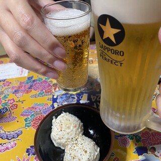 ...■ピーマンとなんか ■チャーハン ■沖縄そば ■ご飯 ■ブルーシールアイスとサーターアンダギー ■なんかのお茶と生ビール大 ■息子が飲んでたなんかのジュース...スープは魚の旨みがめちゃしっかり出て美味しやつ。 ●ブルーシールアイスとサーターアンダギー 息子と嫁ちゃんが食べてた...