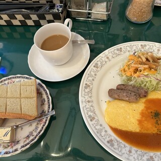 ...■外観です ■ロスティーセット1100円・・・目玉焼き、ソーセージもどき、パン ■メニュー右 ■(参考)近くの公園の紅葉...セットに自家製皮なしソーセージが付いて、ホカホカのパンが2種類付いていました。ドリンクもセットです。 オムレツのプレートもソースがかかっていて、付け合わせサラダ・自家製、皮なしソーセージに2種類のパンが付いてドリンクもセットでした...