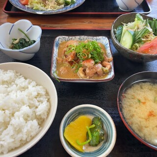 ...お店の雰囲気はこんな感じ。テーブル席と座敷があります。 一番人気の「馬ホルモン定食900円」と、女性に人気の「チキン南蛮定食800円」を注文しました。 定食が中心ですが、ちゃんぽんやうどん類もあります。 定食の場合、ご飯のおかわりは一回まで無料。 カウンターまでお茶碗を持っていくと、ご飯をよそってもらえます。 こちらが「チキン南蛮定食800円」...