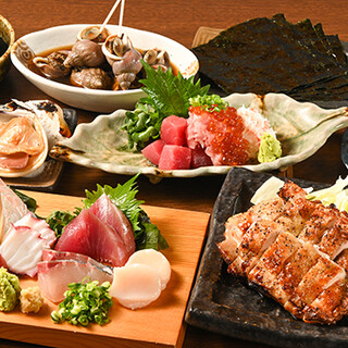 ...■塩だれきゅうり ■茶豆塩ゆで ■たまごやき ■明太チーズたまごやき ■九条ネギの明石焼き風たまごやき...■エイヒレ炙り ■マグロ脳天炙りねぎまみれ ■地鶏炭火焼 ■チーズポテトフライ ■ジャンクポテト ■煮穴子棒寿司 ■ねぎとろ巻き...■鮮魚の溢れ寿司 ■明石焼き風だし巻き玉子 ■トマトのチーズ焼き...