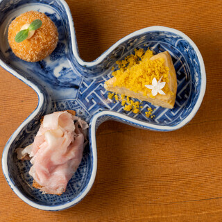 ...-お料理は日により異なる場合がございます- ●豆皿籠膳 くらげ/よだれ鶏/自家製叉焼/いかセロリ/押し豆腐青葉/ エビマヨネーズ/もち揚げ餃子/くるみと棗(なつめ) など ●ふかひれ麺 或いは 御飯(御飯にはスープ付) ●杏仁豆腐...