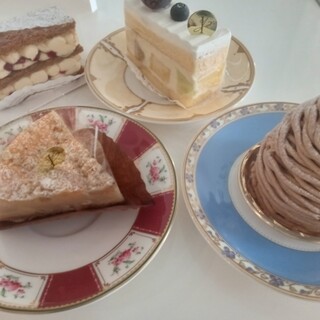 ...■水が美味い ■ガレット・デ・ロア ■割ってみました ■ミルフォイユとcafé(Hot) ■ミルフォイユ(カヌレも試食させてもらえました)...カウンター4席、2人がけテーブル2卓です。 メニュー。 ミルフォイユ(821円)とcafé(Hot...