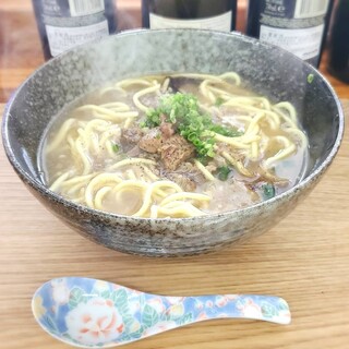 ...豚の丸腸なので、脂は多い部位ですが、塩の味付けは下品でなく、丁度良い塩梅でした。 一緒に作った、八重山そば(沖縄そば)の塩焼きそばに合わせて食べたらより...