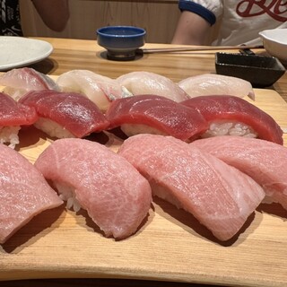 ...はまち、 ■大煮穴子 ■左から 中トロ、赤身、ウニ、渡り蟹、サーモン ■玉子をあてで。 ■海老マヨサラダ ■牡蠣フライと刺身盛合せ ■サ...