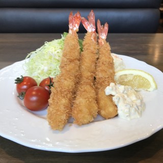...■プリプリの大きなエビが3本!!! ■肉は和牛100% ■山形庄内産の三元豚ポーク ■2種類のやわらかい牛肉をご賞味ください。...ハンバーグステーキ目玉焼きのせ(1,045円)+ライス(209円)・・・肉は「和牛7:黒豚3」の黄金比率...