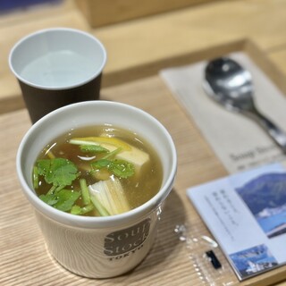 ...スープストックセットのご飯で注文 焼き鯛出汁の和風スープととうもろこしとさつま芋のスープでお願いしました ご飯には白胡麻たっぷり 焼き鯛出汁の和風スープにはネギやもち麦も鯛と一緒に入っていて結構ボリューミー...自分的に。 今日は、 生姜入り7種の和風スープ ごはん(・ω・)ノシ 私のわがままかもしれませんが...