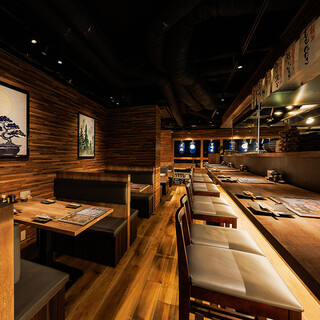 ...内装は和風モダンという感じで海外の人にはガッツリ和風でないのが行きやすいかも。...入り口はお茶屋です 店内はスッキリとした和風 そしてオープンキッチンとカウンターです...