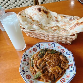 ...■プリン350円 ■シンプルな店内 ■200プラスでドリンクが付きます。ホットチャイ ■本日はポークです。 ■添え物の 紫大根?サラダ ...