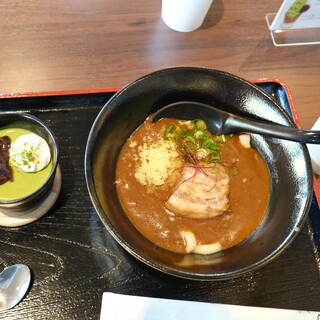 ...下界の暑さから逃れて御在所山頂へ行き、お昼に入りました。御在所カレーうどんは伊勢うどんにカレーがかかり、豚の角煮と揚げ玉がのったうどんです...