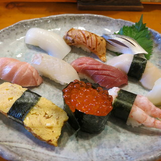 ...お昼限定の握り寿司に生ビールをいただきました。程よいボリュームでシャリの具合も良く、思いがけずおいしい江戸前寿司を堪能しました。来年のひ...