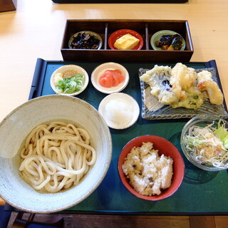 ...うどんはコシの強いうどん食べ応えしっかり。 鶏天も大きくて柔らかくジューシー。 炊き込みご飯は薄味の印象。 美味しいけど、全体的な価格か...