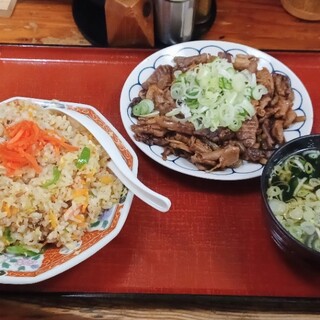 ...会社の同僚から「焼肉定食」をゲキ推しされたため...よってみた。 ほかに定食屋もいきたかったので 焼肉定食と小ラーメンをオーダー レビュー通り焼肉定食は絶品で ラーメンも美味しかった 帰りは温泉に行って帰ろう...
