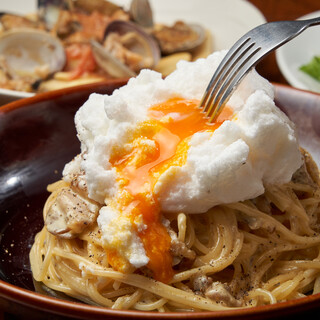 ...ネーミングがまんまで笑う。スルメ感覚でお酒と一緒に。 ■青森県産、マトウダイの煮付け。美味しい! ■牛乳と生クリームを一切使わないカルボナーラ...ここは東北の食材を使用し、イタリアンメニューや郷土料理を提供する店です。 鯛の煮付けをいただいた後...
