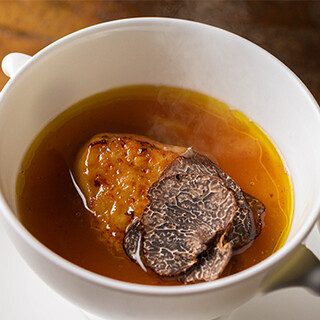 ...自家製黒胡麻七味 橙 *河豚のアラのスープ *(八寸) あん肝の時雨煮蕗の薹蕗味噌田楽(下に生麩、上に蕗味噌)車海老の生揚げと海老味噌 花山葵の醤油漬け 厚焼玉子 金柑チーズ(金柑甘露煮とブルーチーズとクリームチーズを合わせたもの)...
