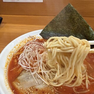...お好みに合わせて。 麺はストーレート細麺。 低加水のパツっとした歯切れの良い麺。 この辺りは「白河ラーメン」のような 太めの縮れ麺を使う店が多い中貴重な存在...