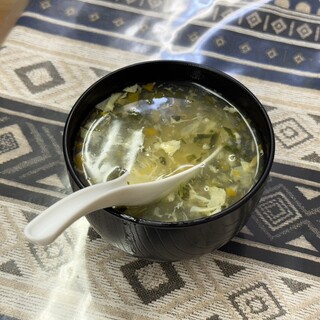 ...市販の野菜ジュースかな…?時間が経つうちに氷で薄まり、微妙。 次にスープ、こちらは白湯風…?白くてとろみがあり生姜が効いてる。味は、うーん…。 そのあと...ランチセット(¥1300)の内容 ・オレンジ色のジュース ・白湯風スープ ・サラダ...