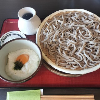 ...コスパはイマイチかな〜。トロロざるそば(1100)を注文。おーかなりのトロロ量!!!生卵の黄身がセンターにガッツン!写真みると目玉焼きか〜麺は太麺平打ちコシ抜群の田舎蕎麦ですね...