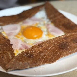 ...長野県産の全粒粉そば粉100%で 香りがとても良かったです! 目玉焼きとチーズももちろんおいしいですが、 信州ポークロースハムもめちゃうま!!...1300円 長野県産全粒粉そば粉100%使用とのことで香りもいいです。目玉焼き卵...