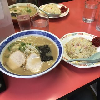 ...■セルフ おろしニンニク&激辛高菜 ■塩豚骨ラーメン ■細麺 ■替玉 ■大盛りチャーハン ■パラパラチャーハン ■激辛高菜...ともきんラーメンの餃子セットにしました。細麺で一蘭に似てるかも。チャーハンも美味しそうでした...高菜やニンニク無料です。細麺で美味しいですよ♪高菜は辛いので注意してください...