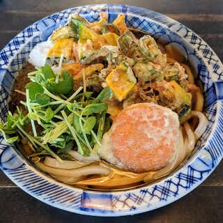 ...滑らかなうどんと、独特のスープとのコントラストが楽しい逸品です♪ 具材として豚肉・しめじ・葱・人参などが入って、醤油ベースの豚汁のような味わい...