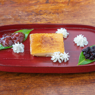 ...特製レアチーズに能登の里山で採れた4種類のソースからお好きなソースを選んでかけて楽しめます。 ■米飴仕立ての豆乳プリン 生地には砂糖を使わずに、米飴と甘酒というお米の甘みをつかって味をつけ...