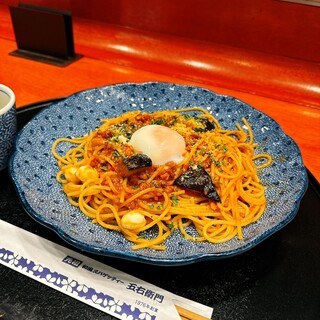 ...■ボンゴレ・ロッソ(トマトソース) ■モッツァレラチーズと黒豚粗挽きソーセージのナポリタン温泉卵添 ■たらこと生あさりと湯葉の京風だし仕...
