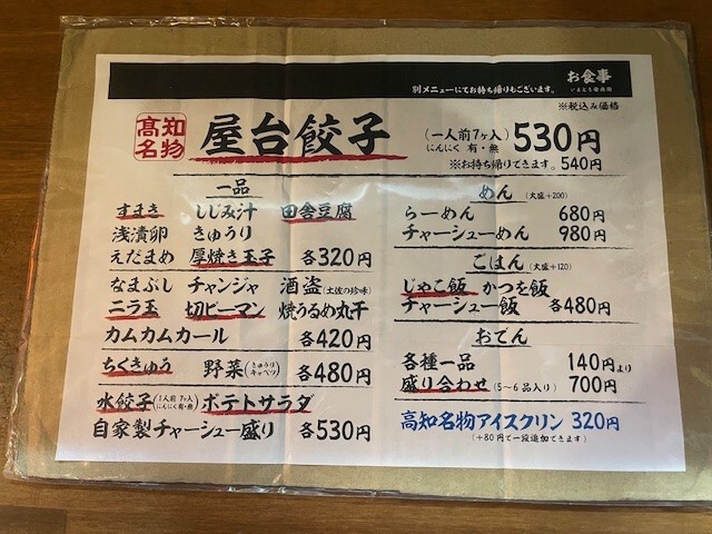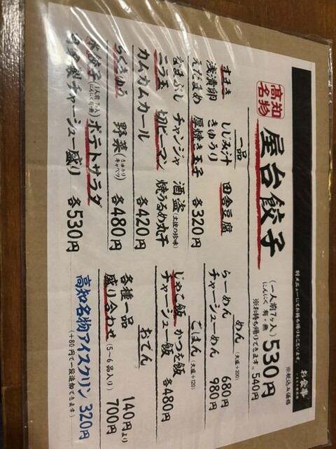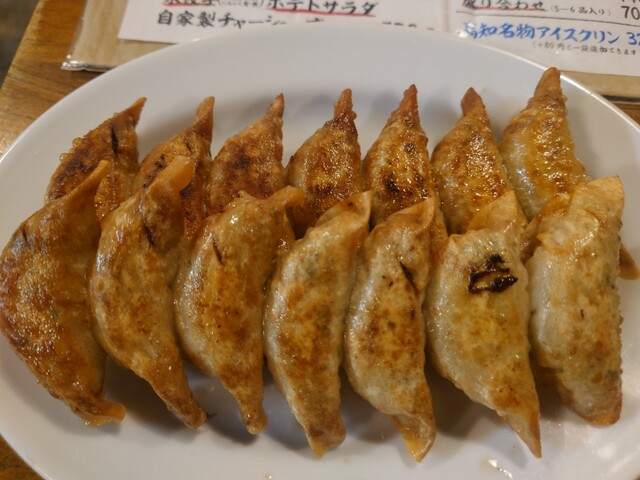 高知の街で軽く一杯という場面に、これ以上ないほど相性の良いお店だと思います。小ぶりな餃子ながら一皿あたりの個数が多く、見た目以上に満足感が高いのが印象的でした。今回は定番の餃子を注文しましたが、皮は薄...